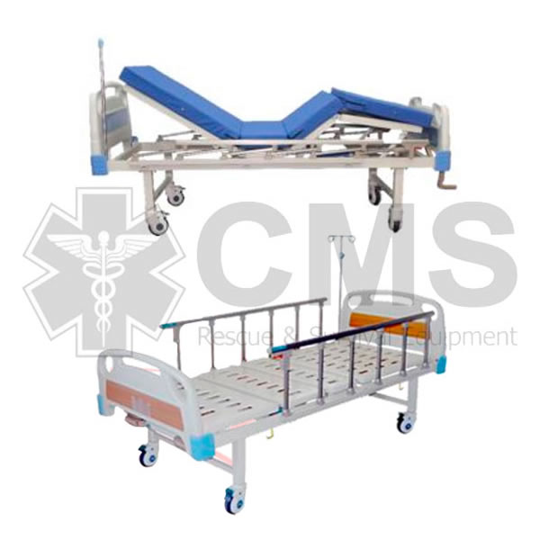 Esta cama hospitalaria de 2 manivelas manual es un mobiliario médico usado para el reposo y recuperación del paciente, en área de internamiento y observación. La plataforma de la cama cuenta con cuatro secciones para permitir la inclinación de la espalda y piernas. Estructura que goza de gran estabilidad en todas las posiciones requeridas por el paciente.